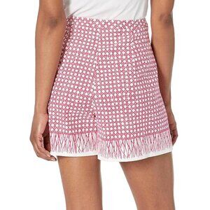 Approx. inseam- 5", rise- 12.5". Partial lining. A-line silhouette.