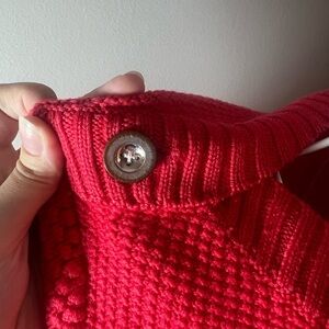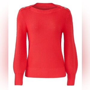 Trina Turk Women Red Boat Neck Button Long Sleeve Merino Wool Paris Sweater S