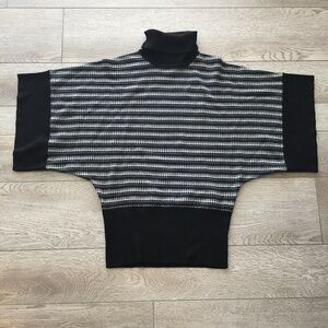 Trina Turk Women Sweater Wool Striped Turtleneck Gray Wide Sleeves 128012 Knit S