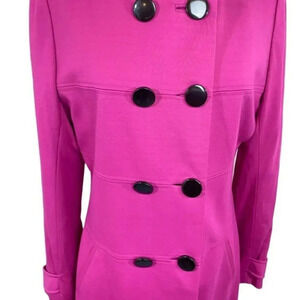 Trina Turk 12 Fuchsia double breasted lined coat with black buttons