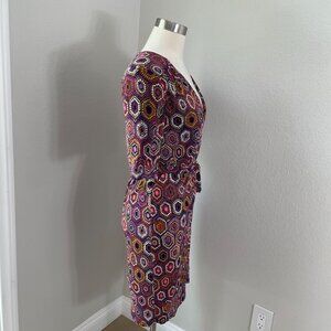 Trina Turk Womens 6 Geometric Stretch Wrap Dress Short Sleeve V Neck