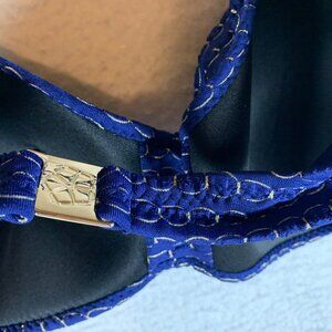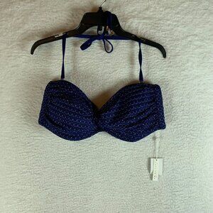 Trina Turk Women's Adeline Metallic Bandeau Navy Bikini Swim Top Size 14 NWT 9940