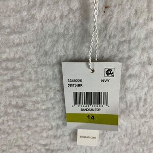 Trina Turk Womens Adeline Metallic Bandeau Navy Bikini Swim Top Size 14 NWT 9940