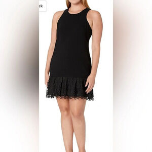 Trina Turk Women's Berry Sleeveless Drop Waist Dress Black Size 10 Crochet Hem