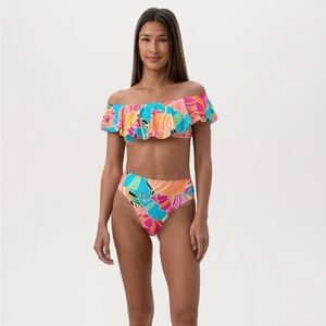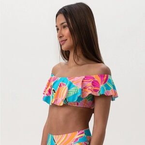 Trina Turk Womens Bikini Poppy Off The Shoulder Ruffle Bandeau Size 6