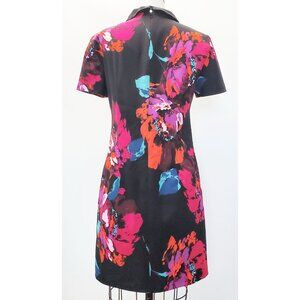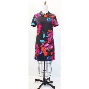 Trina Turk Womens Black Bright Floral Print Jeweled Collar Shift Dress 10