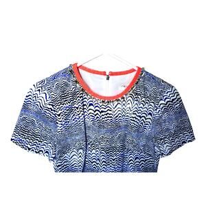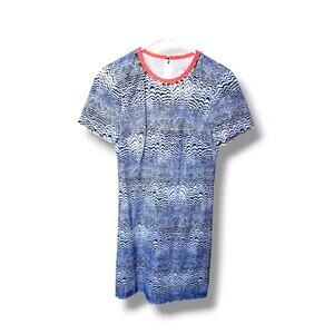 Trina Turk Women's Blue Wave Print Embellished Stretch Shift Dress Size 4