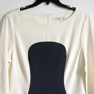 Trina Turk women's black & cream 3/4 sleeve knee-length sheath dress. Comes from a smoke-free environment.