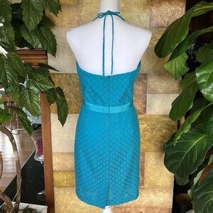 Trina Turk Women’s Embellished Beaded Halter Turquoise Backless Lace Sundress