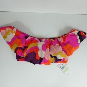Trina Turk Womens Fan Faire Off The Shoulder Ruffle Bandeau Swim Top Size 4