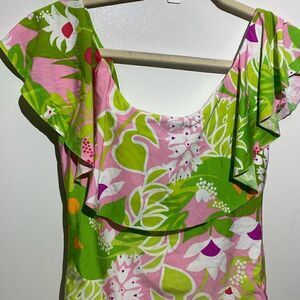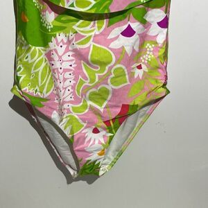 Trina Turk Women's Green Pink La Palma Off Shoulder One-Piece Swim Size 12