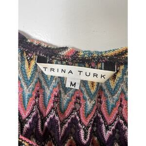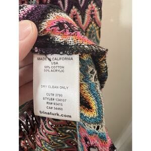 Trina Turk Women’s Knit Blouse Sz M Multicolor Vibrant Boho Gypsy Hippie Rainbow