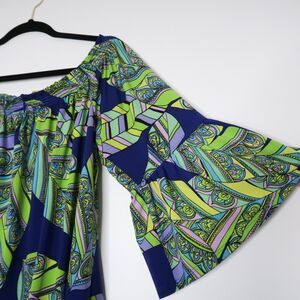 Trina Turk Womens Mini Dress Size Large Green Blue Paisley Shift Geometric 70s