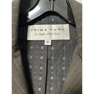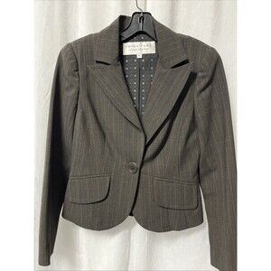 Trina Turk Women's Pin Striped Brown Crop Lined 1 Button Blazer Jacket Size 4