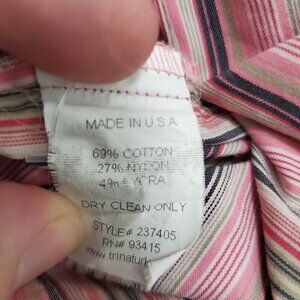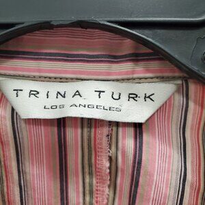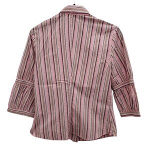 Trina Turk Women's Pink Multicolor Stripe 3/4 Stripe Button Up Blouse Size M