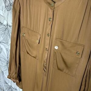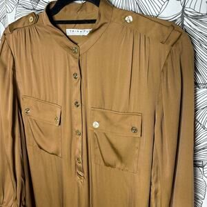 Trina Turk Women's Pocket Blouse Old Gold Color Size Large
