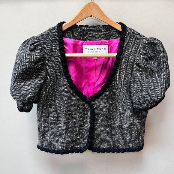 Trina Turk Women's Puff Short Sleeve Cropped Tweed Wool Blazer- Size 6