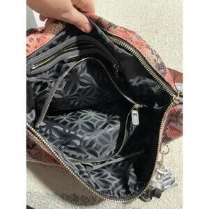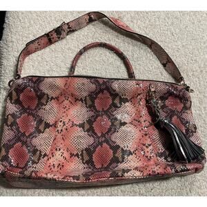 Trina Turk Women's Size OS Python-Snake Embossed Leather Shoulder Bag Pink Gray