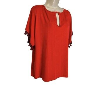 Trina Turk Women's Red Tassels short sleeve Top Size M Keyhole Front Viscose