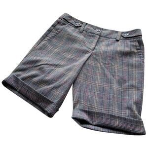 Trina Turk Womens Shorts Size 2 Brown Plaid Cuffed Bermuda Made in USA