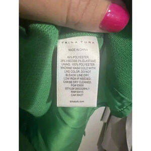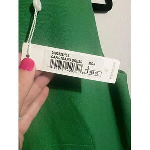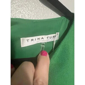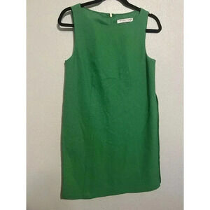 Add a pop of color to your wardrobe with this stunning Trina Turk dress. Featuring a beautiful mojito green hue, this sleeveless shift dress is perfect for any occasion. The boat neckline and layered accents add a touch of elegance to the dress, while the side-split design keeps it playful and on-trend.