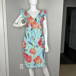 Trina Turk Womens Size 8 Dress Sleeveless Floral Sheath Tropical Colorful