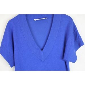 Trina Turk Womens Short Sleeve Sweater Loose Fit V-Neck Stretch Blue Pullover