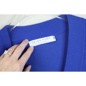 Trina Turk Womens Small Sleeve Sweater Dress Cozy V-Neck Silk Cashmere Wool Blue