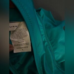 A trendy one-shoulder style complements the ruffled bandeau, showcasing an edge in swimwear fashion.