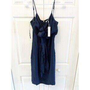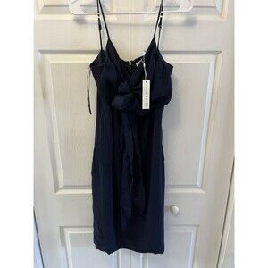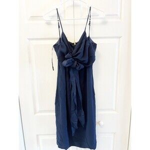 Trina Turk Women's Starry Navy Blue Dress Draped Crepe Tie Front Size 6 NWT