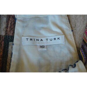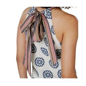 Trina Turk Women's White Blue Floral Halter Neck Sleeveless Shift Dress Size 10