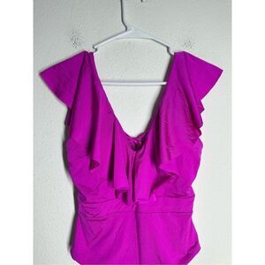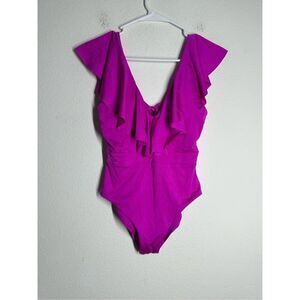 Trina Turk Women's Standard Atlas Ruffle Plunge One Piece Swimsuit Orchid Size 4