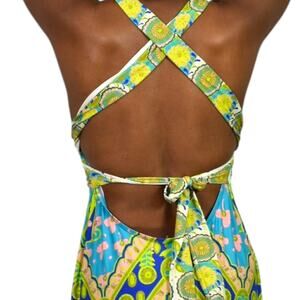Trina Turk Woodblock Halter Maxi Dress Green Floral Swim Coverup Sundress Large