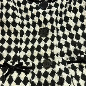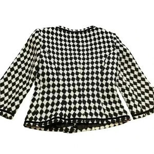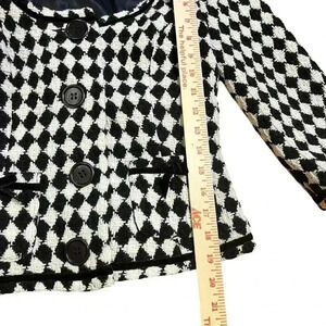 Trina Turk Wool Blend Jacket Size 4 Tweed Preppy Velvet Trim Bows Chic Career
