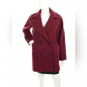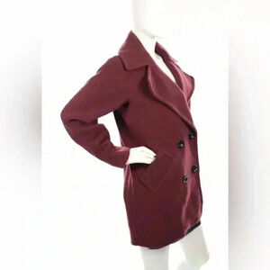 Trina Turk Wool Cashmere Blend Double Breasted Burgundy Red Winter Peacoat 14