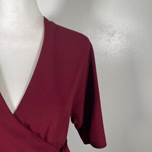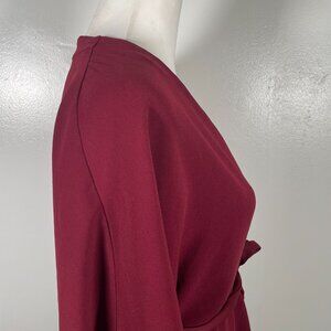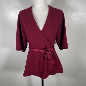 Trina Turk Wrap Top Womens Size 4 Maroon Tie Waist Long Sleeve V Neck Back Zip