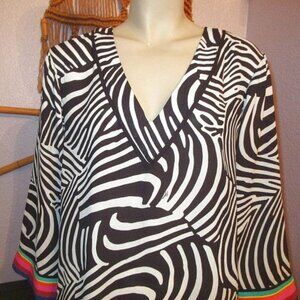 Trina Turk X INC Tunic Top Size XL Rainbow Cuff Zebra Chiffon Kimono Retro Pride