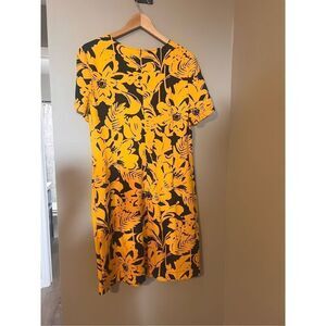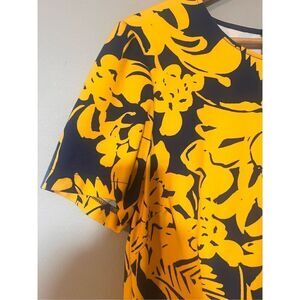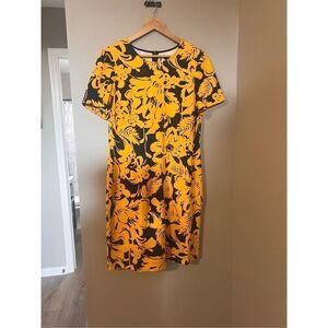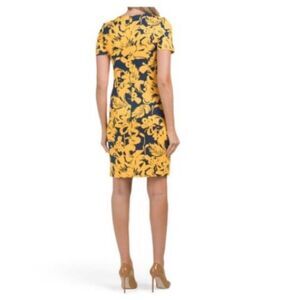 Trina Turk XL Short Sleeve Ponte Stretch Sheath Dress Yellow Tropical Floral New