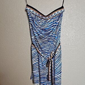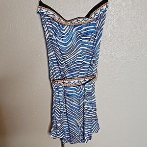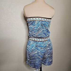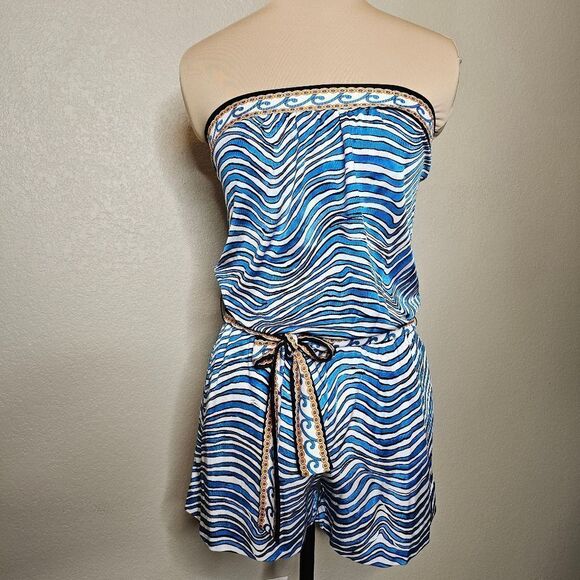 Trina Turk XS Silk Blend Strapless Romper Blue and White Striped with tie belt