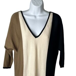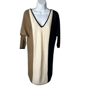 Trina Turk XS Sweater Dress Color Block Merino Wool Blend V-Neck Dolman Sleeve