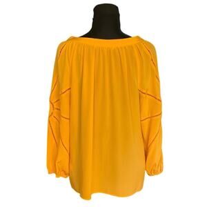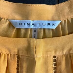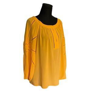 Trina Turk Yellow Peasant Blouse Silk Scoop Neck Lightweight Career Wear Size S