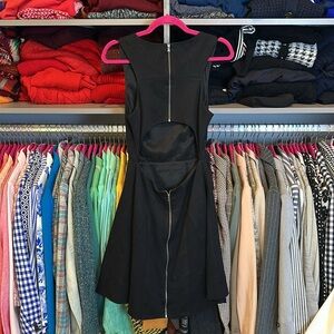 Trina Turk black lace lined back zipper cut out closure dress size 2