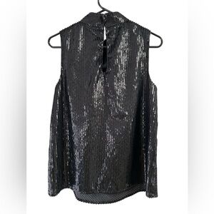 Trina Turk black mock neck sleeveless blouse