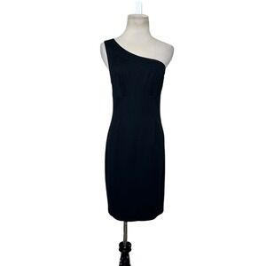 Trina Turk black one shoulder sheath mini cocktail dress size 0