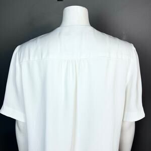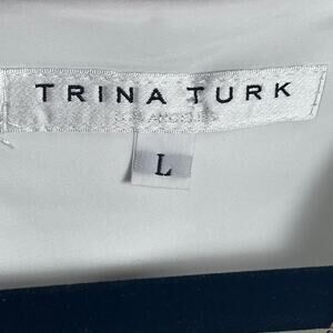 Trina Turk blouse top Large white short sleeve office summer coastal