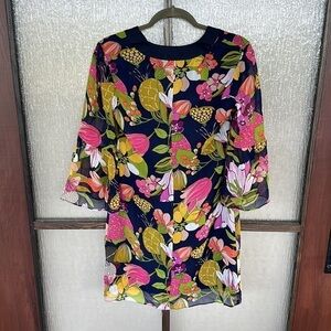 Trina Turk cheers print blue floral shift dress in size XS NWT