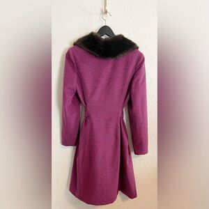 Trina Turk coat with fur trim collar in fuchsia purple 6