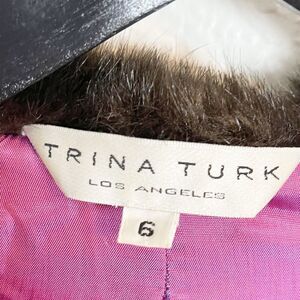 Vintage Trina Turk. Great for the holiday season. Beautiful purple pink with brown fur collar and sash belt. Not sure if it’s real fur or not. Fur is so in! Ptp 19”, length 38”. Questions? Leave a comment below!