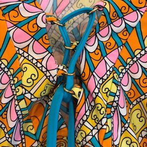 The Trina Turk cover up/mini dress is a stylish and sexy option for women size small. Made with stretch fabric, this colorful cover up offers a perfect blend of functionality and fashion. Perfect for lounging by the pool or making a statement at the beach, this versatile piece is a must-have addition to any woman's wardrobe. The Trina Turk brand ensures high-quality and on-trend designs, making this cover up a standout choice for those who love bold and vibrant clothing.