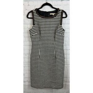 Black and white houndstooth pattern sleeveless dress by Trina Turk. Zipper in back. Dress is fully lined. Good used condition. See all pictures carefully for wear/condition of item .Size 10